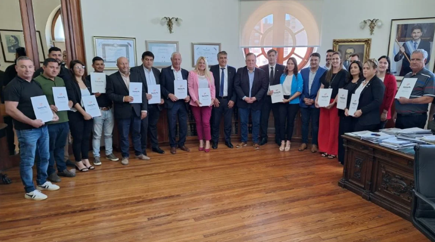 Este jueves, en el ministerio de Gobierno e Innovación Pública, sito en Casa de Gobierno de la ciudad de Santa Fe, su titular Fabián Bastia y el ministro de Economía Pablo Olivares, acompañados por el Senador Felipe Michlig y el Diputado Marcelo González, firmaron convenios de aportes del Programa “BRIGADIER” para 14 destinatarios del departamento San Cristóbal por un monto total de $ 414.794.583,44 (ver detalle en gráfico abajo), los cuales «se efectivizarán con las correspondientes transferencias en los próximos días».