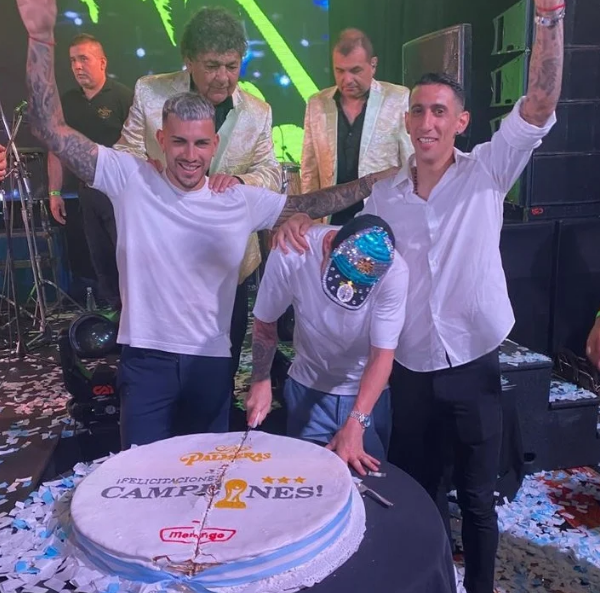El pasado jueves por la noche y ya habiendo sido homenajeados y felicitados por todo el universo del deporte, con el hincha argentino habiendo ya festejado en las calles, algunos jugadores campeones compartieron un evento privado en Rosario en una celebración donde un alfajor santafesino gigante y la cumbia de Los Palmeras coronaron una noche "bien santafesina".