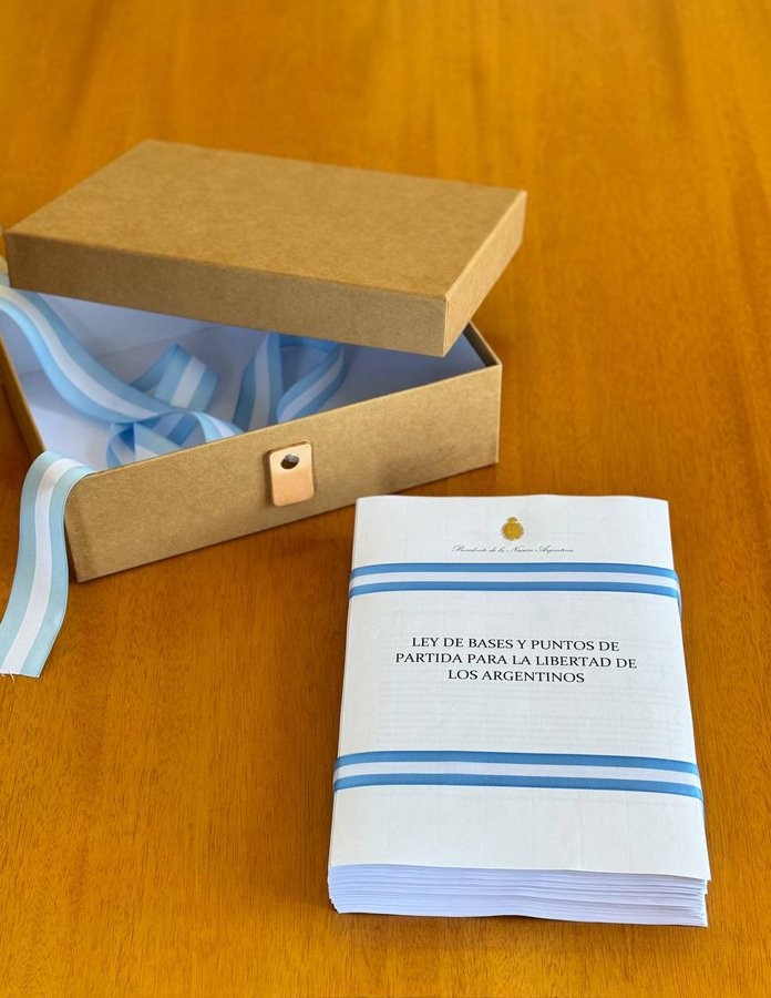 El proyecto se denomina "Ley de Bases y Puntos de Partida para La Libertad de los Argentinos" y fue entregado este miércoles por el ministro del Interior, Guillermo Francos, al presidente de la Cámara Diputados, Martín Menem