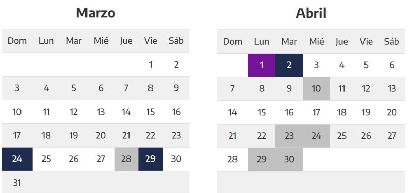 Esto comprende del Jueves Santo, 28 de marzo, hasta el martes 2 de abril inclusive, con la conmemoración de Malvinas.