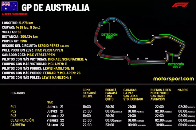 HORARIOS PARA EL GP DE AUSTRALIA F1 2024 Y DÓNDE VER