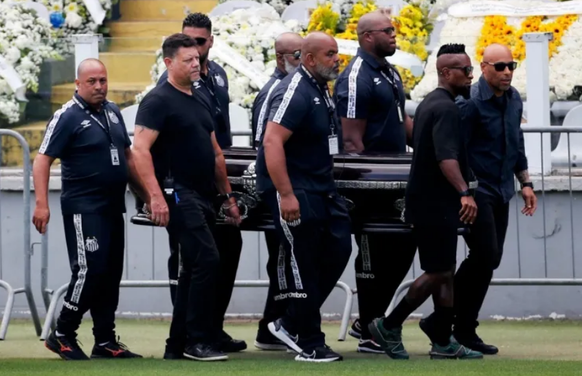 El último adiós al histórico ex delantero comenzó este lunes a las 10 y se llevará a cabo hasta el martes en el mismo horario, con la presencia de miles de fanáticos de "O Rei".