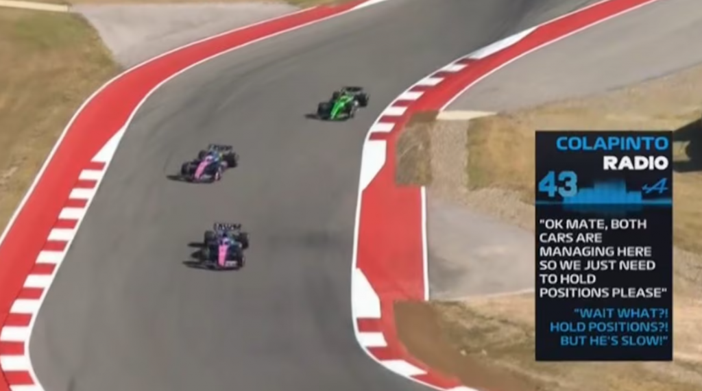 El momento en el que Colapinto desoyó una orden de Alpine y superó a Gasly en el final del GP de Estados Unidos: “¡Rebelate, nene!”