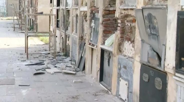 Más allá del robo de bronce y el ingreso al cuarto de sepultureros (en donde se robaron la mayoría de las placas), los trabajadores explicaron que los ladrones generaron destrozos en algunas de las galerías que quedaron totalmente destruidas.