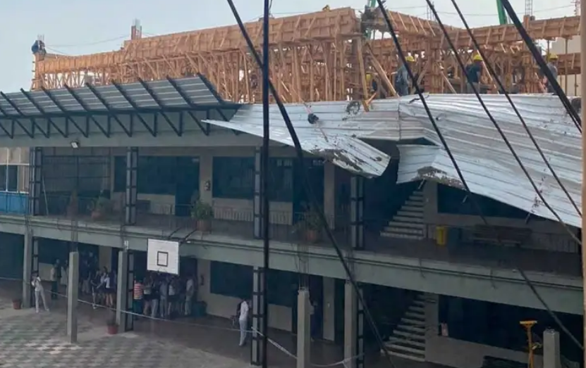 Un gran susto vivió la comunidad educativa del colegio La Salle, ubicado en barrio Candioti de Santa Fe, cuando este miércoles cayó parte de la estructura que está en obras.